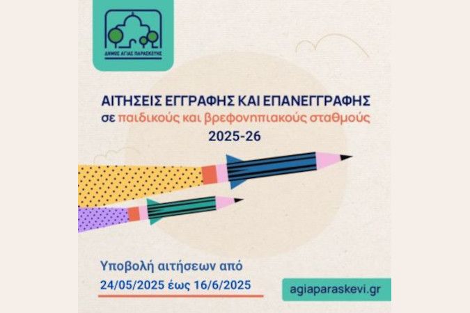 Ανακοίνωση Εγγραφών & Επανεγγραφών (Α΄ Φάση) βρεφών και νηπίων στους Παιδικούς Σταθμούς του Δήμου Αγίας Παρασκευής (ΠΑΙ.Σ.Δ.Α.Π) Σχολικό έτος 2025-2026